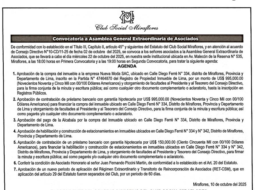 Convocatoria a Asamblea General Extraordinaria de Asociados – 22 de octubre