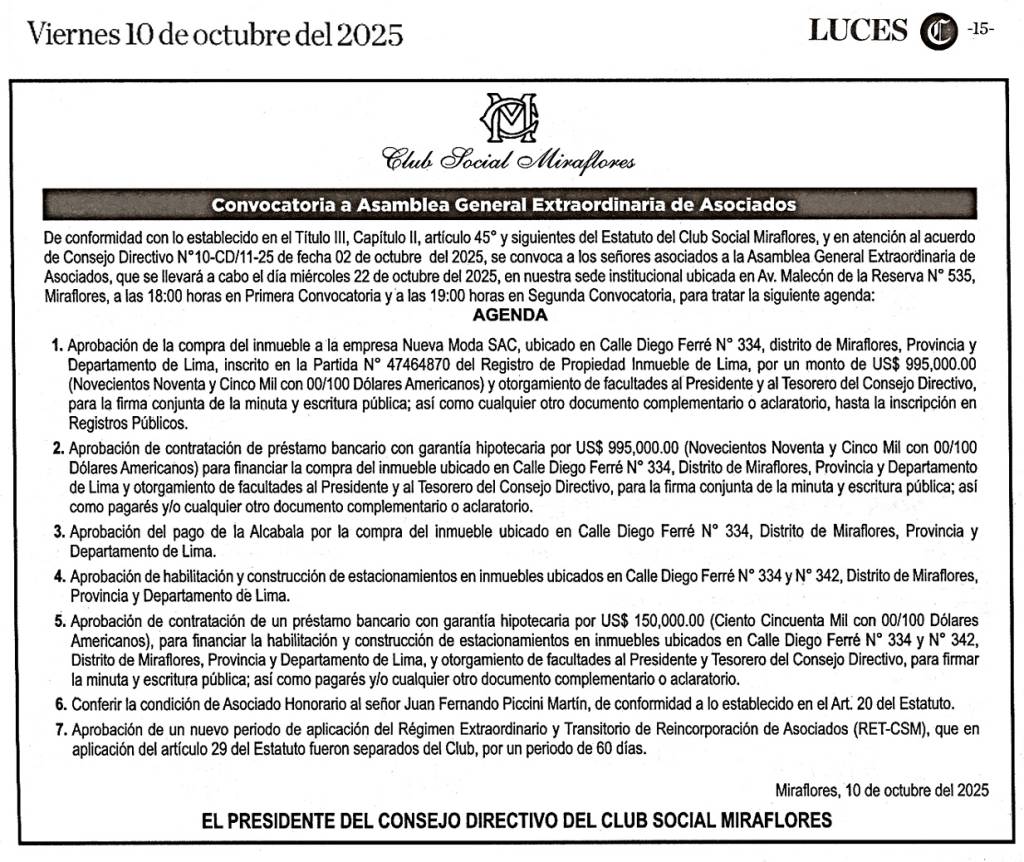 Convocatoria a Asamblea General Extraordinaria de Asociados – 22 de octubre